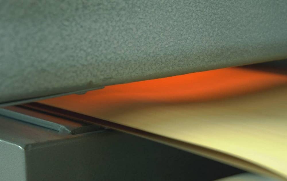 En Tece, usamos EVA basado en calor suave para todos los cantos pre-pegados. Aproximadamente 400 gr de calor suave se aplican en la parte trasera de las hojas. Esto es para garantizar la retención consistente de todas las propiedades físicas de los cantos en diferentes condiciones climáticas en el futuro, independientemente de cómo se utilice el borde.